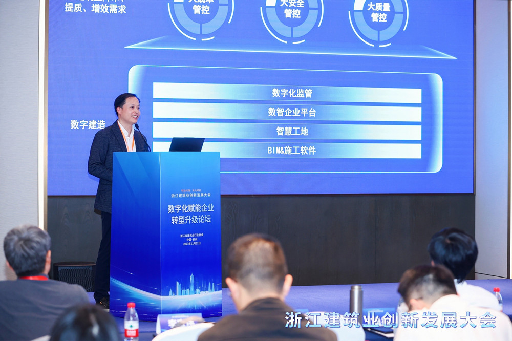在主论坛上,中国工程院院士龚晓南,国务院参事汤敏,中国建筑业协会副会长景万,省建设厅建筑市场监管处处长戴新国,浙江省建筑科学设计研究院董事长赵宇宏等领导发表了主旨演讲,共同探讨建筑业发展前景和新形势下建筑业创新发展趋势,交流数字化赋能工程建设等经验。